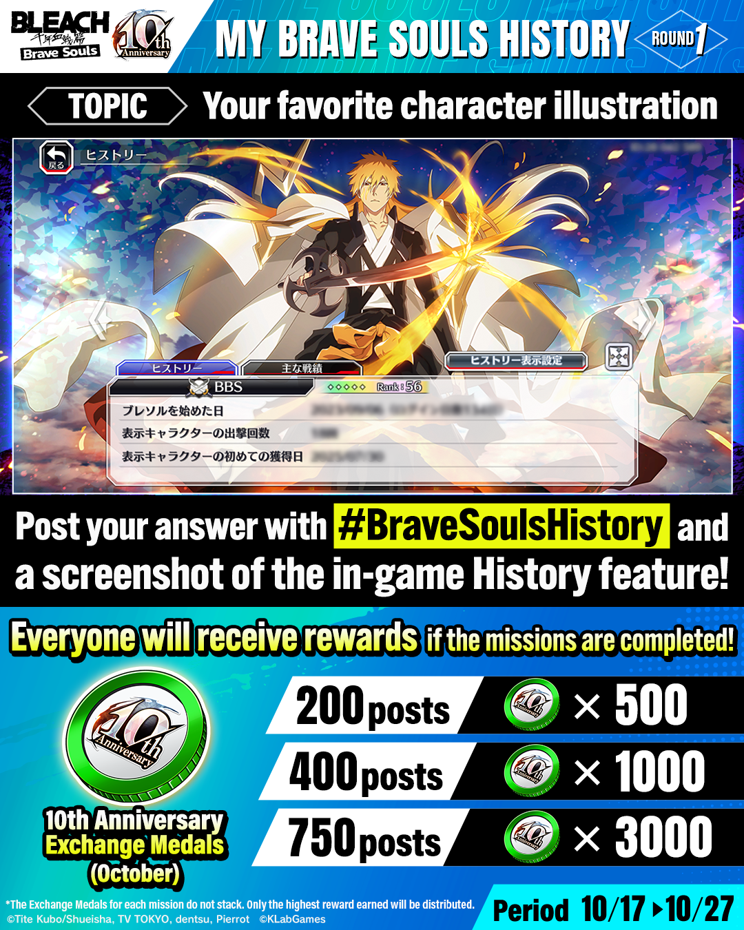 3. Post a story with a screenshot of the History screen and tag our official account (@bleachbravesouls_official).