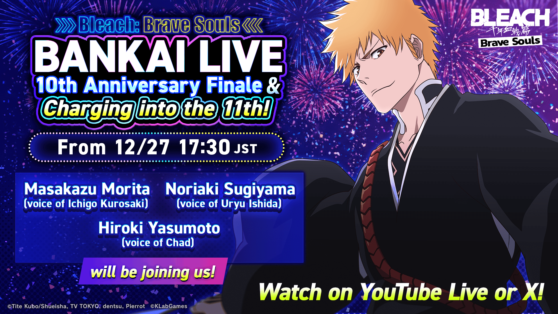 2. Tune in to the “Bleach: Brave Souls Bankai Live 10th Anniversary Finale & Charging into the 11th!” livestream.