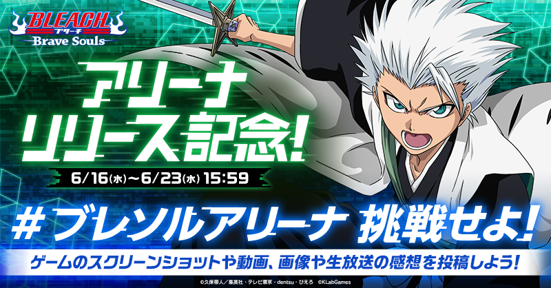 1.「BLEACH Brave Souls」公式Twitterアカウントから投稿される、「【ブレソル】全世界で挑むアリーナプレイ初公開放送!」のURL付きツイートをRTしよう!