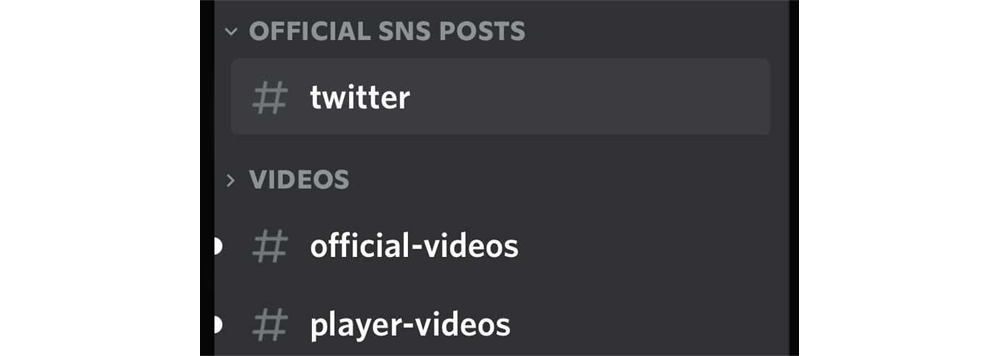 在「#Twitter」與「#official-videos」頻道中,當官方Twitter與官方YouTube內有新的投稿時,便會通知玩家。